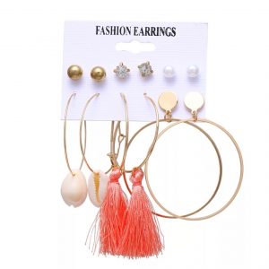 Bohemian 6 pcs/set Bracelet Set Gold Plated Women Tassel Hoop Chain Cuban Link Chains Hand Cuff Bangle Trendy Jewelry